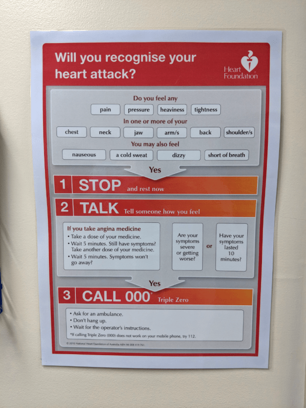 As I was the youngest person in the Cardiac Care ward, by a factor of decades, I got a lot of slightly confused, then worried, then sorry looks from other humans. So I took to wandering the wards by myself, pondering how far I could get before the alarms from the ever-present holter monitor went off, and wishing the waves of dizziness would stop. I got to read lots of literature about heart-attack symptoms and recovery. Lots and lots. I know have intensive, first-hand knowledge and experience of the symptoms of, testing for, and ruling out of, suspected heart-attack. I hope I never have cause to use that.